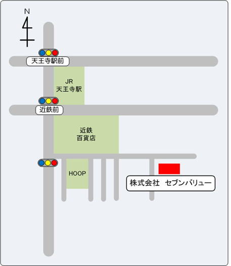 大阪市営地下鉄御堂筋線天王寺駅東改札から近鉄大阪阿部野橋出口5(松崎口)を出て、東へ約3分。